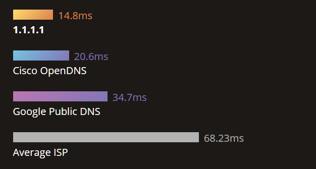EliminarOlá Ze! Basta ires à linha de comandos e efetuares o comando "ping" para o 1.1.1.1 e para outro DNS que queiras comparar.